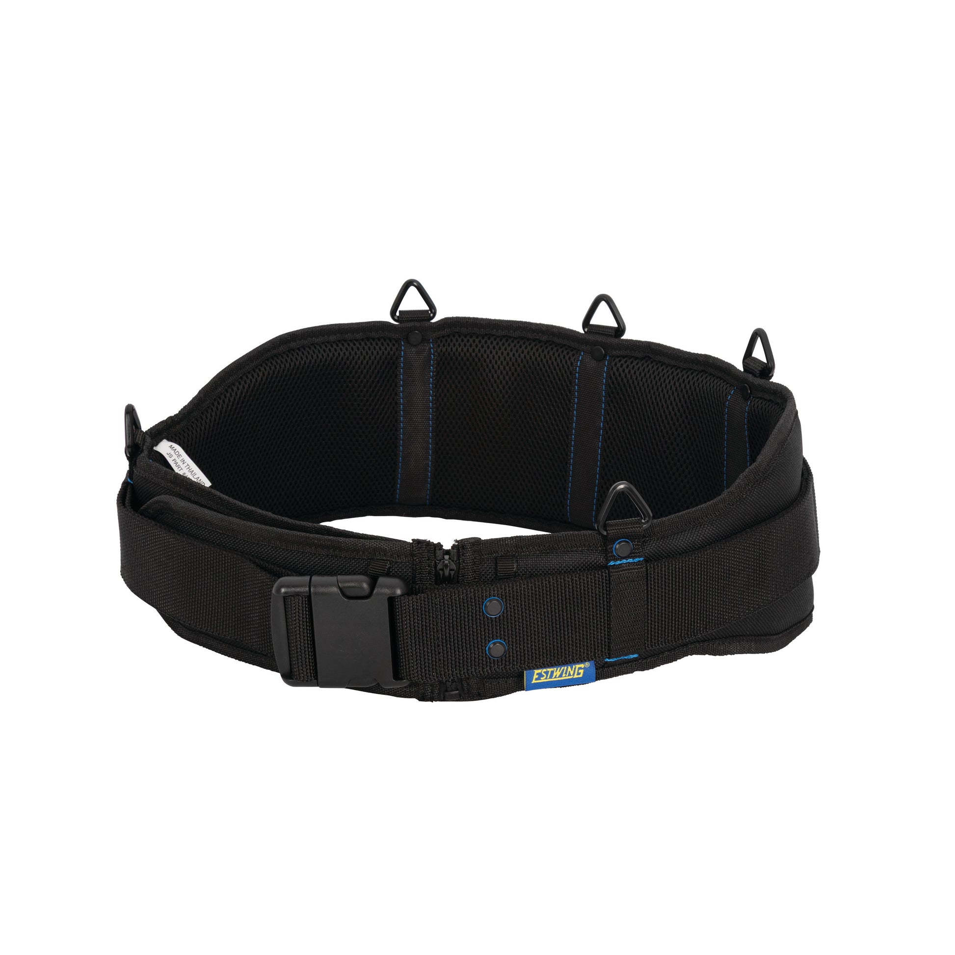 Designed for maximum comfort and heavy-duty utility, the Estwing 42644 Extra Padded Sling Belt with Quick-Release Buckle features a wide 6-inch breathable mesh pad for superior support. Constructed from dual-layer webbing with a removable 8-inch extension and five rivet-reinforced steel D-rings, this belt accommodates suspender rigs and heavy tool loads. The 2-inch width fits PROLOCK™ quick-release pouches as well as other tool attachments, while the steel end cap prevents fraying and can be reinstalled after trimming.